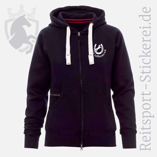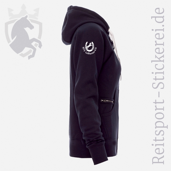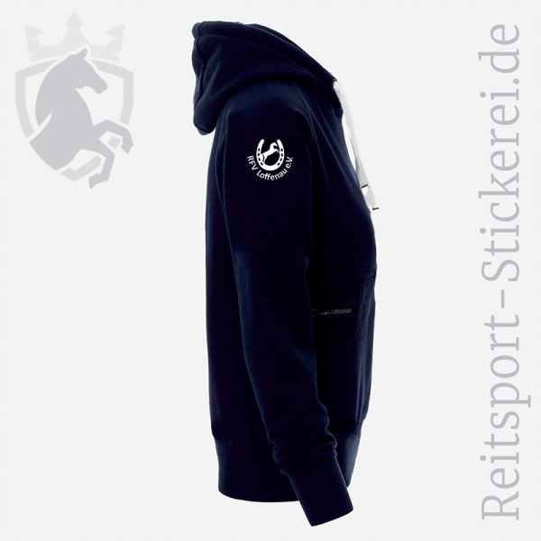 Auf Anfrage ist bei den Damen-Größen auch die Bestickung eines Ärmels möglich (Aufpreis 7,- €). Schreibt den zusätzlichen Bestickungswunsch bitte in das Texteingabefeld "Eure Nachricht an die Reitsport-Stickerei".