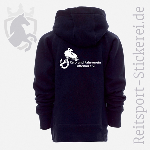 Die Sweatjacke fällt sowohl in den Kinder-, Damen- und Herrenvarianten normal groß aus. Das Damen-Modell ist tailliert und das Herren-Modell ist gerade geschnitten. Die Kinder-Variante eignet sich gleichermaßen für Mädchen und Jungs.