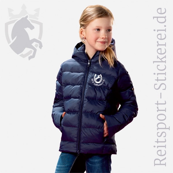 Wattierte Herbst-/Winter und Übergangs-Reitjacke für Damen und Kinder, mit Kapuze und praktischem Zwei-Wege-Reißverschluss.