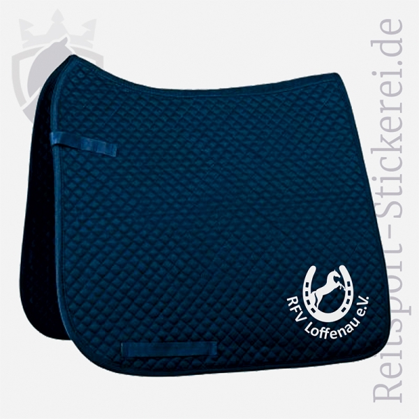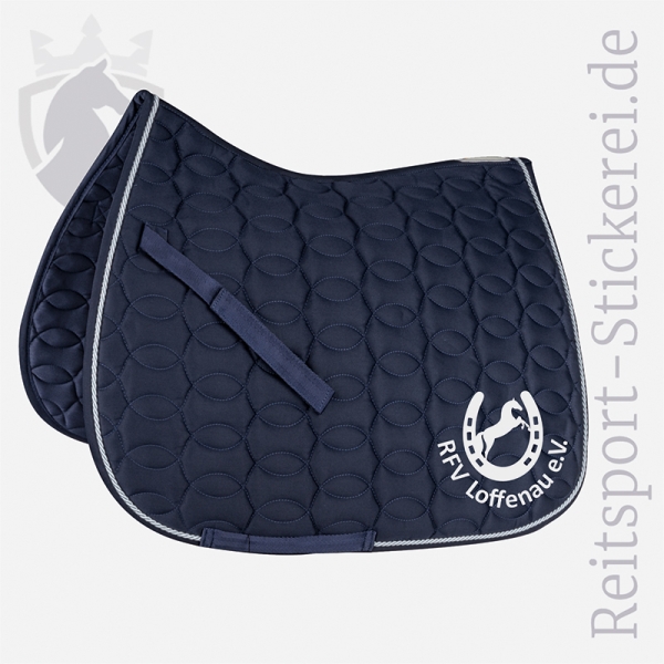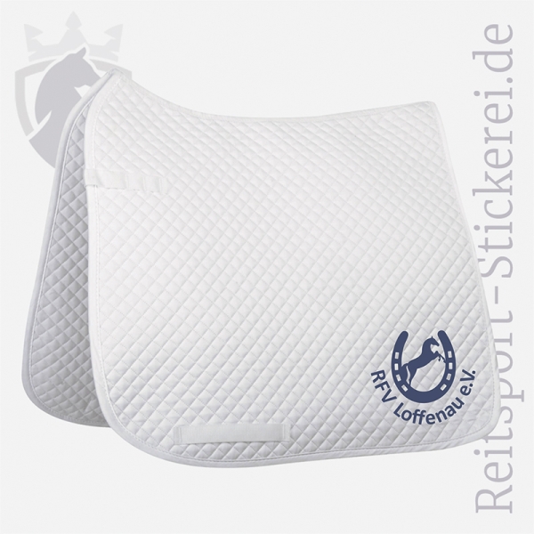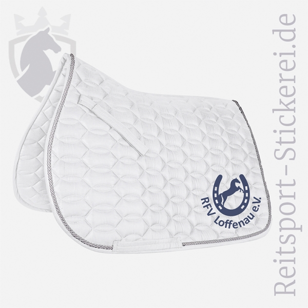 Wahlweise in weiß oder dunkelblau, für Großpferde und einseitiger oder beidseitiger Bestickung bestellbar.