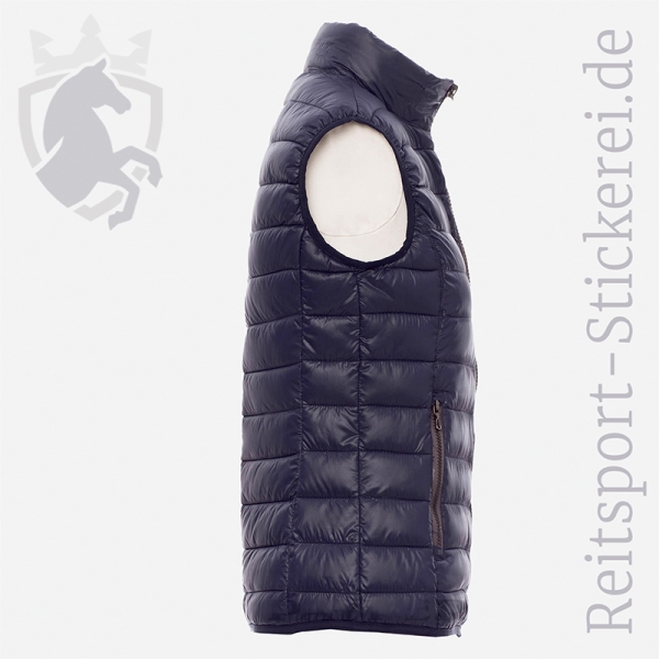 Ultraleichte abgesteppte Weste im Daunenlook. Ideal als Bodywarmer über Shirts, Sweats, Reit- und Funktionsbekleidung zu tragen.